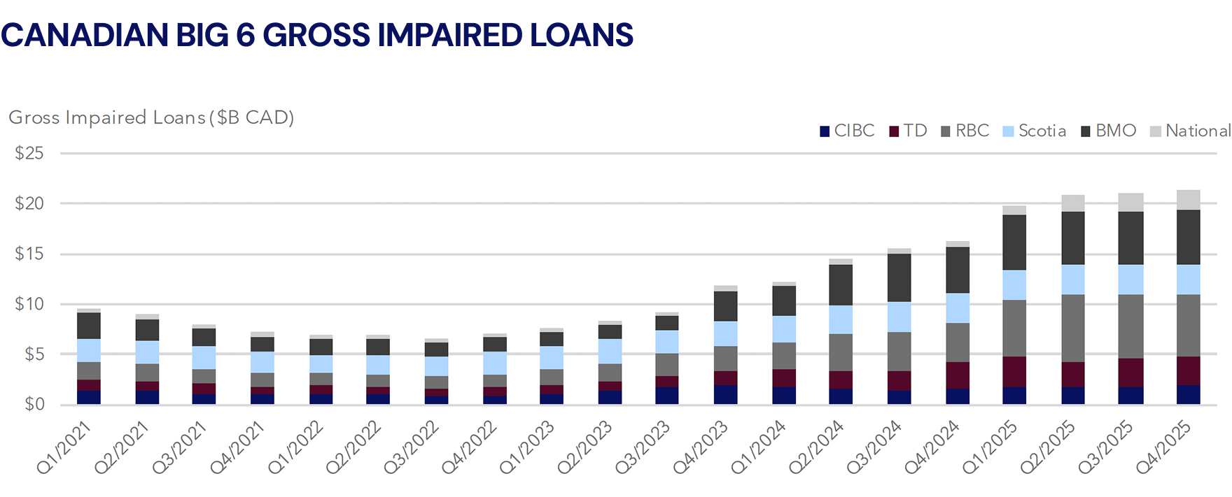 Special Loans & Insolvency groups should be busy in 2026 – Gross Impaired Loans grew materially in 2025 and now represent 1.2% of all commercial loans outstanding (vs. 0.7% historical average)