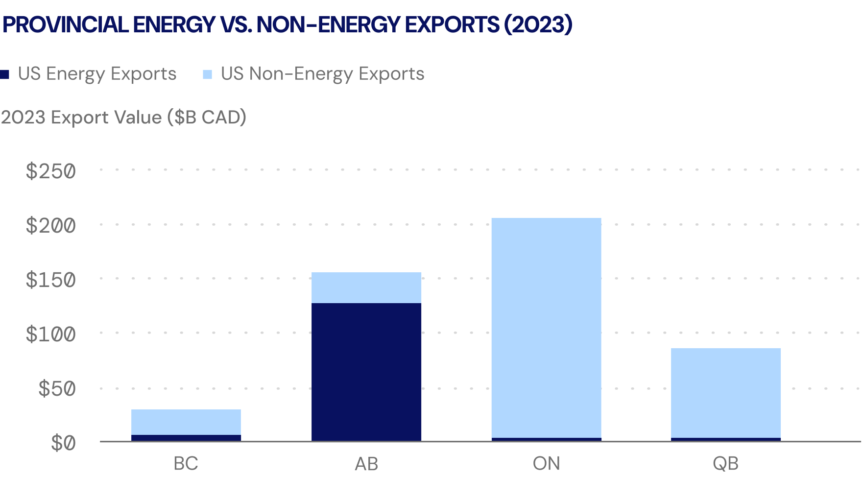 The Canadian auto, energy, industrials, and forestry industries are 80%+ reliant on US markets.