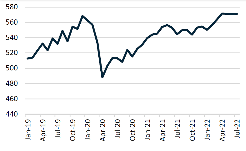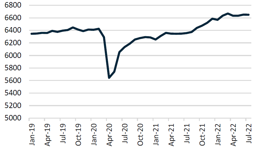 Female Employment (Jan 2019 - Jul 2022, 000s)