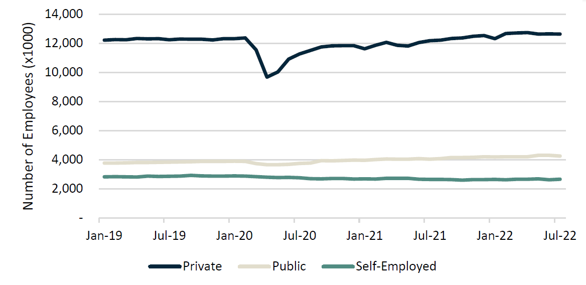 Employment By Sector (Jan 2019 - Jul 2022)