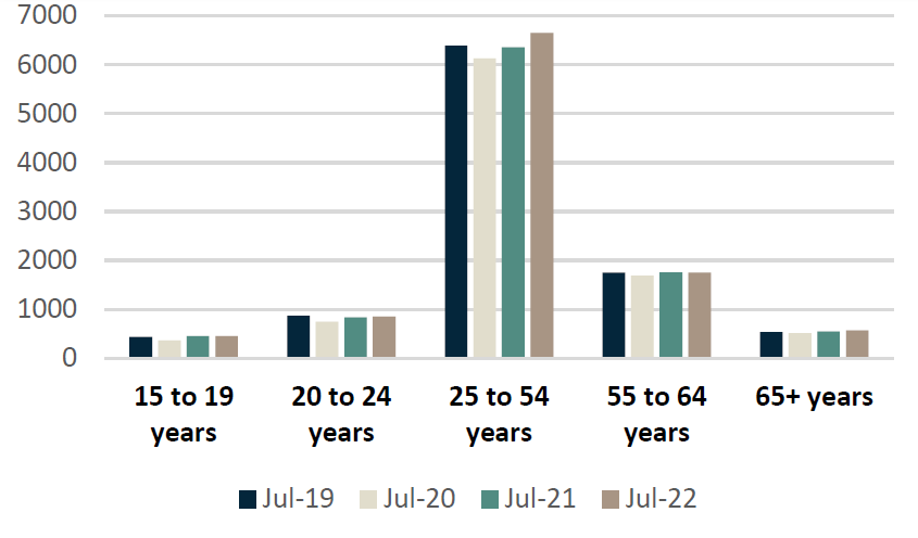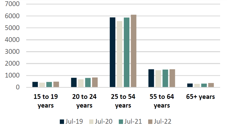 Male Employment (Jan 2019 - Jul 2022, 000s)