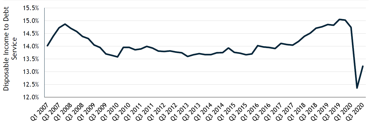 % of Household Disposable Income Required to Debt Service