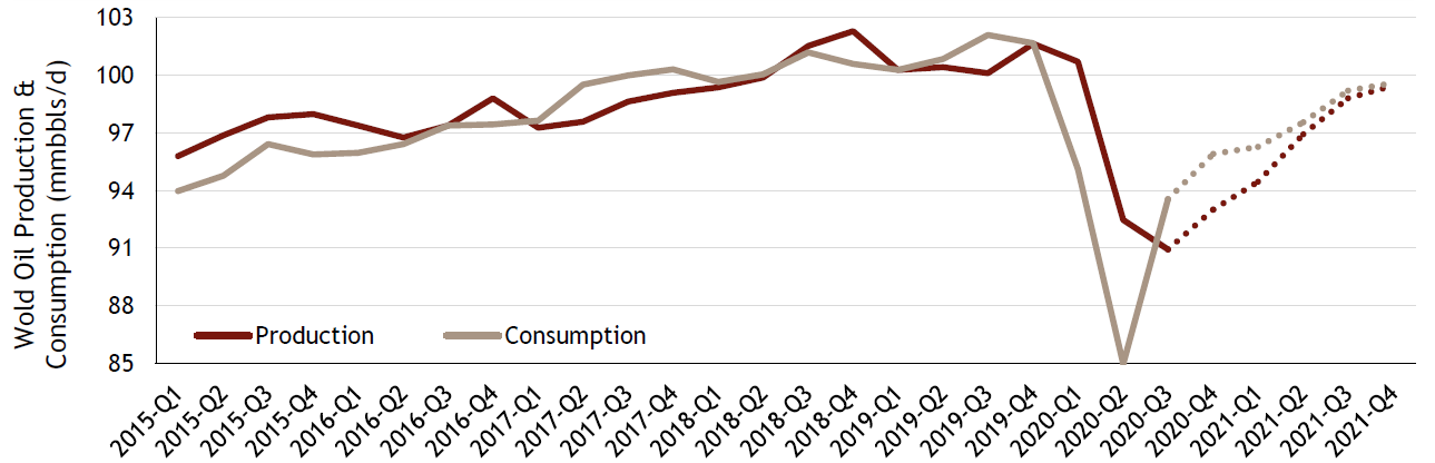 UPDATED VIEW: Having made it through the depths of the energy price war (remember negative oil prices?), demand has pushed back towards 94mmbbls/d but is not expected to reach pre-pandemic levels for the near future. Production has responded and provides a more constructive outlook, with OPEC remaining in the driver’s seat on the overall supply/ demand dynamics. Investors continue to push for a healthier sector with greater free cash flow which has driven increased consolidation activity. For a more in-depth view of the Canadian Energy sector, check out the replay of our first DWA Expert Speaker Series.