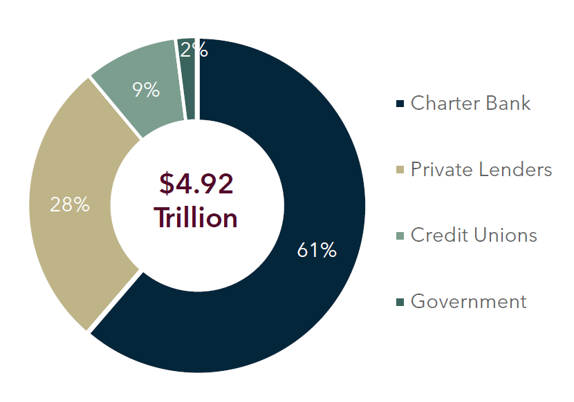 Despite this, the Banks continue to dominate the Canadian lending landscape, holding 61% of the Canadian loan book. Meanwhile, the Private Credit market is making major gains and now controls 28% of the market. While obtaining credit from the Banks is becoming increasingly difficult, we see the Private Credit market as finally having its day in the sun.