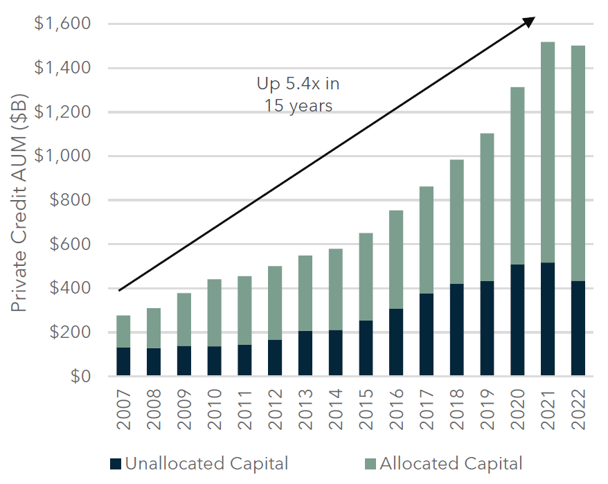 Private Debt Markets Are Primed And Ready To Go: In 15 years, the global Private Credit market has grown by over 5x and now equates to $1.5 trillion.