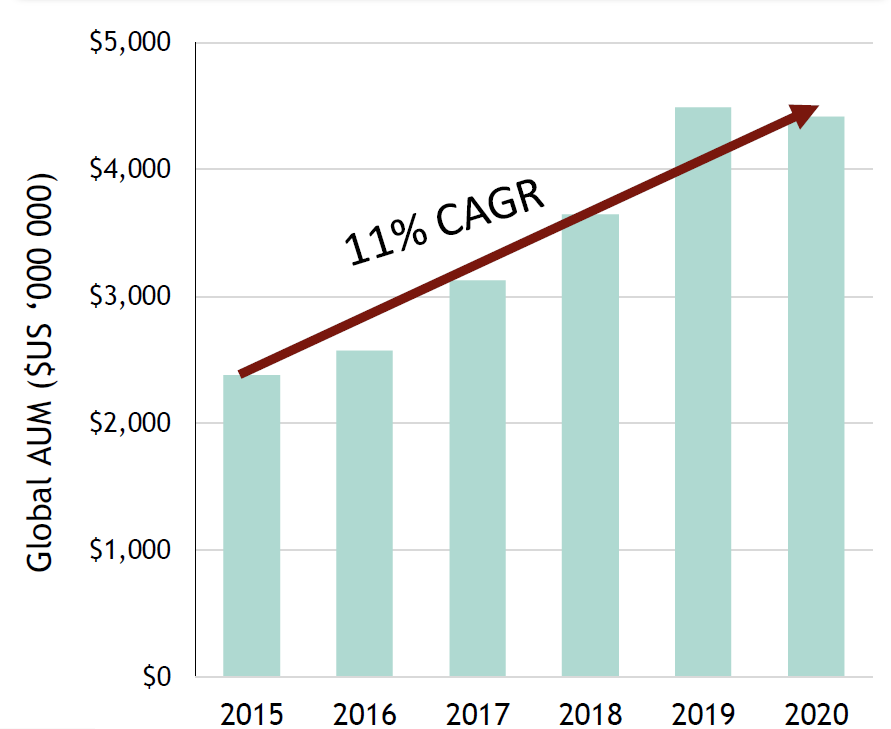 While the private equity and private debt sectors pale in comparison to their public counterparts in terms of AUM, their respective growth rates are nothing to scoff at. Longer term, this likely drives an increase in capital access for private companies (a good thing) and ultimately less need for those companies to become public entities. Industry experts expect the growth rates to continue with Private Debt expected to be a $1.5 Trillion asset class by 2025, representing 11.5% Compound Annual Growth Rate (CAGR), while Private Equity is expected to add another US$4.5 Trillion, representing a CAGR of over 15%.