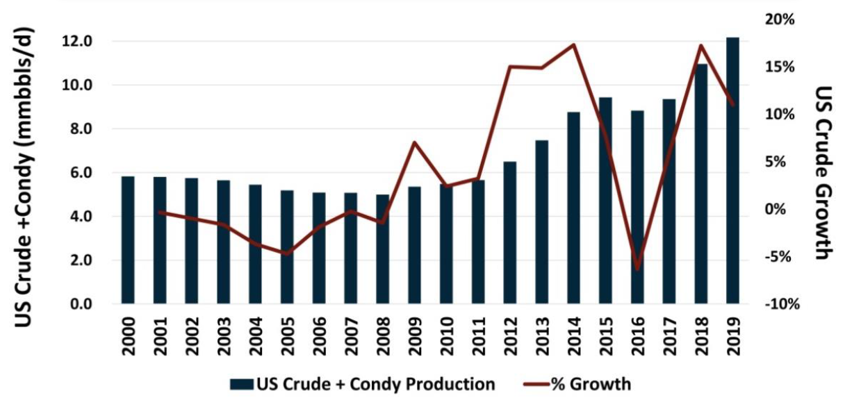 November 27, 2014 - a date that will forever hang in our minds. Saudi Arabia rejected calls for a crude oil supply cut, signifying a price war against the emerging threat of US supply growth. Crude prices slid 10% that day, capping off a 35% fall over a 4 month timeframe and setting the stage for a further 33% decline in the following 2 months. The price collapse stalled out in January 2015 before taking another plunge late 2015/early 2016 which saw WTI prices dip below $30/bbl. This downturn was hard on the industry with capital spending, service costs and institutional investor support all undergoing a transformational change. And while the downturn did remove 0.6 mmbbl/d of US production, it was temporary as US production has since grown by 3.3 mmbbls/d.