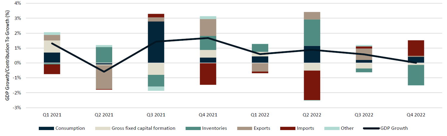 Canadian GDP Growth/Component Contribution, Quarterly (Q1 2021 - 2022 Q4)