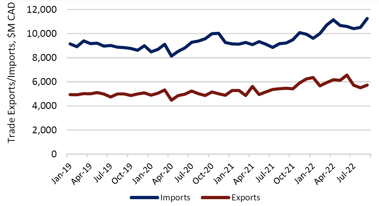 Canadian Trade Account Balance, Jan 2019-Aug 2022
