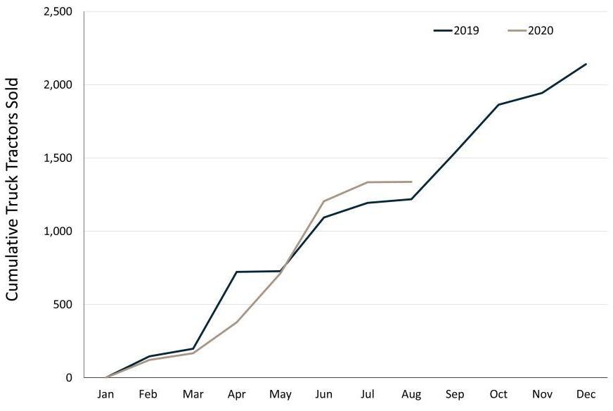 Cumulative Sold - Truck Tractors 2019 vs 2020