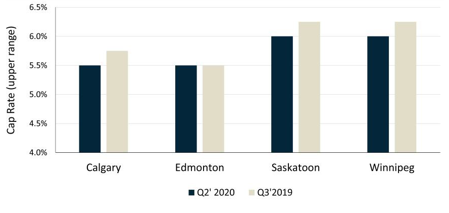 Despite cracks starting to show in the Calgary commercial real estate market with marginal increases seen in cap rates for the various asset classes (CBRE Q2’2020 report), in Edmonton, Saskatoon and Winnipeg cap rates have largely sat unchanged over the past year. As we enter Q4’2020 we do anticipate that to change given: