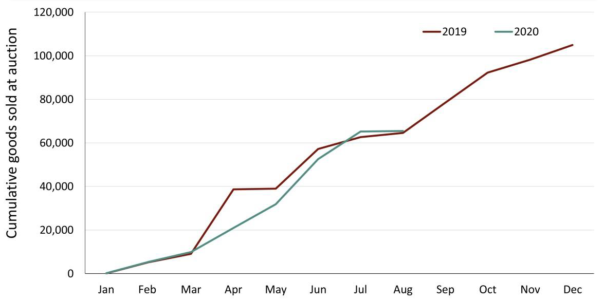 Richie Brothers - Total Number of Items Sold At Canadian Prairies Auctions (2020 vs 2019)