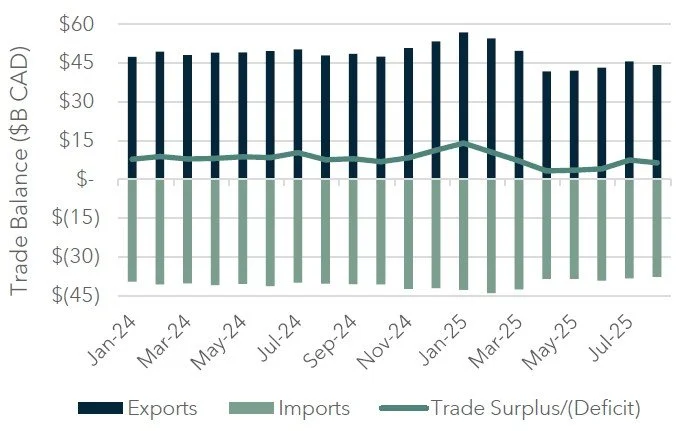 The Canada/U.S. Trade Balance (Jan 2024 - Aug 2025)